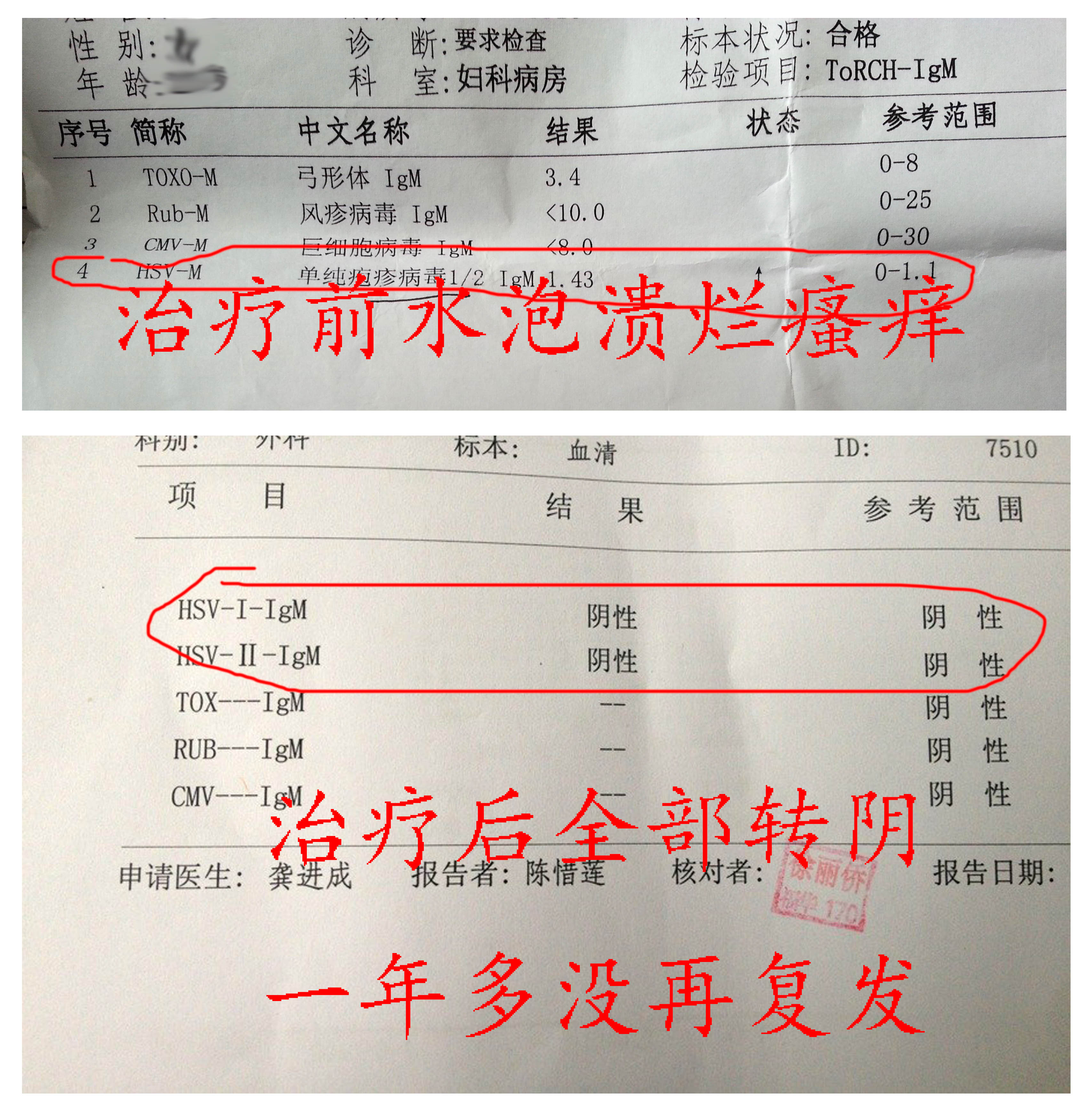 恩恩,我相信你一定可以摆脱生殖器疱疹困扰的。我平时发病都要10多天才能消退,没想到用了新秦药物研究所指导的产品以后,竟然奇迹般的3天就消退了,也坚定了我继续冶疗的决心,经过几个月的坚持用药、饮食调理、和新秦药物研究所指导不断的沟通,以前每个月复发一次的疱疹,竟然奇迹般的消失了,甚至后来我都快忘记我曾经是一个严重的疱疹患者了。下面这个是我生殖器疱疹的恢复状态: